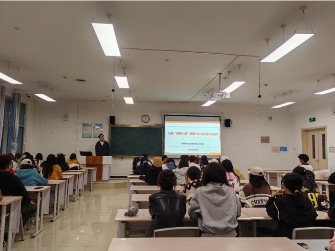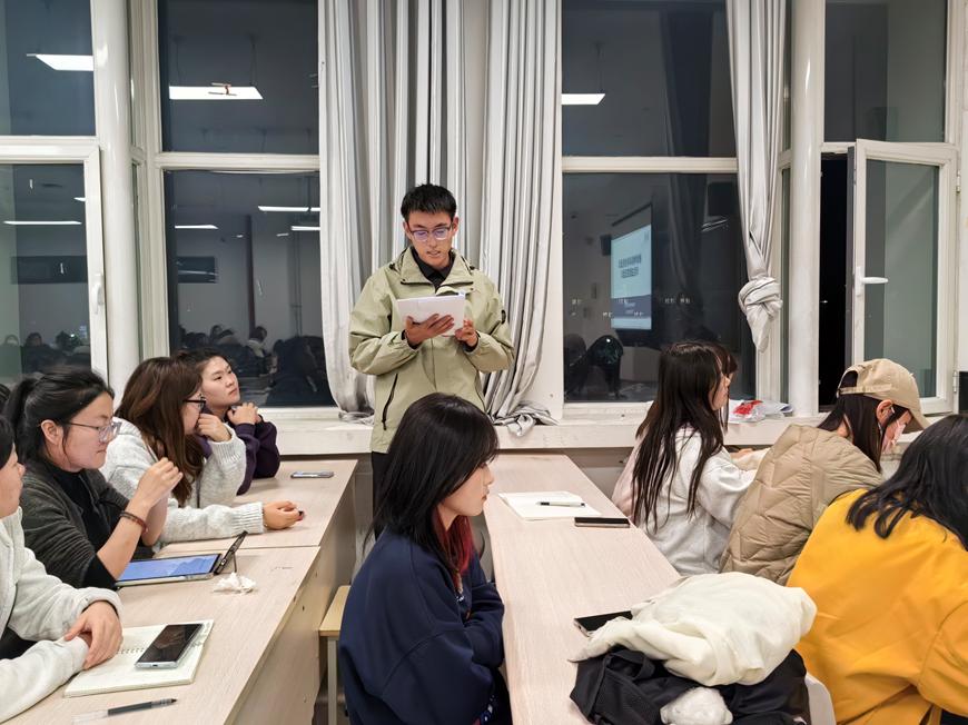 活动分为“支部书记讲党课”和“学生党员原著领学”两个环节。在讲党课环节,宋泽夏老师以《弘扬“两弹一星”精神 助力建设科技强国》为题,深情回顾了我国研制“两弹一星”的辉煌历程与伟大成就,深刻阐述了以“热爱祖国、无私奉献,自力更生、艰苦奋斗,大力协同、勇于登攀”为核心内涵的“两弹一星”精神。宋泽夏老师说到,站在新的历史起点,支部全体党员和入党积极分子要深刻领会这一宝贵精神财富的时代价值,自觉将其转化为刻苦学习、勇攀高峰的强大动力,将个人理想追求融入国家发展大局。在随后的原著领学环节,支部全体党员依次原原本本、逐字逐句领学了习近平总书记《弘扬伟大抗战精神 向着中华民族伟大复兴的光辉彼岸奋勇前进》的重要论述。通过沉浸式诵读和深入思考,与会同学深刻感悟了天下兴亡、匹夫有责的爱国情怀,视死如归、宁死不屈的民族气节,不畏强暴、血战到底的英雄气概,百折不挠、坚忍不拔的必胜信念这一伟大抗战精神。